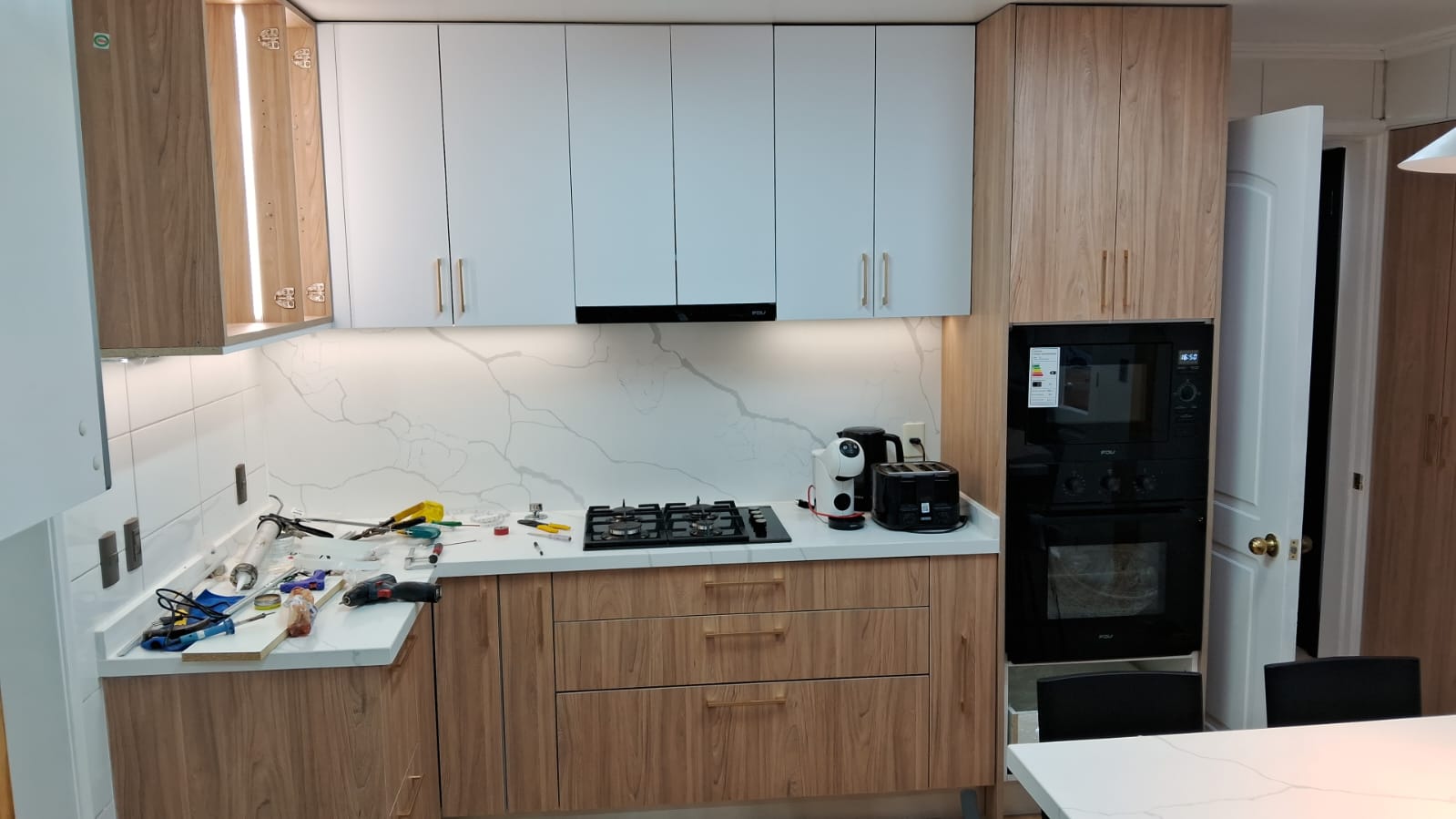 Sí. Además de renovar cocinas, fabricamos muebles a medida con maquinaria CNC: cocinas completas desde cero, closets y vestidores, muebles de baño y muebles de living u oficina. El mismo estándar de precisión y la misma persona a cargo de principio a fin.